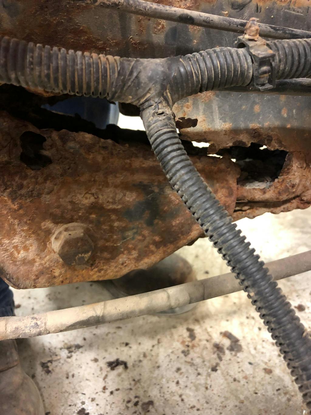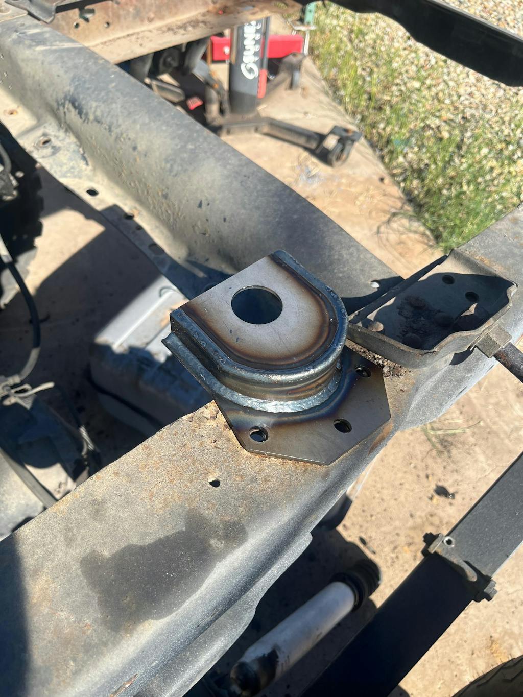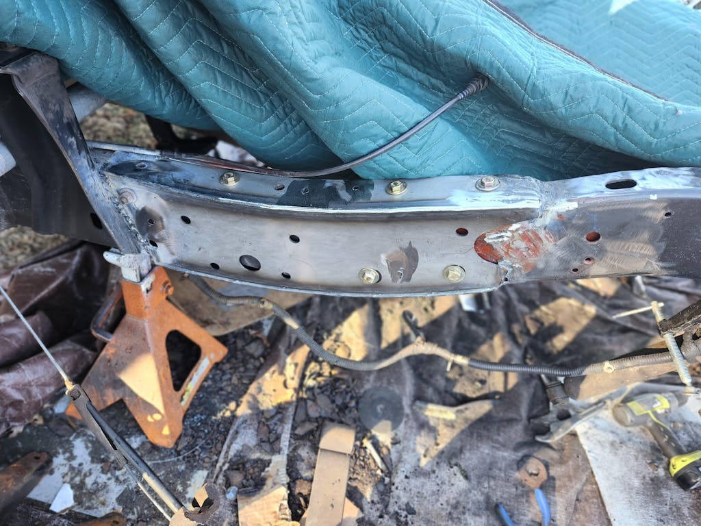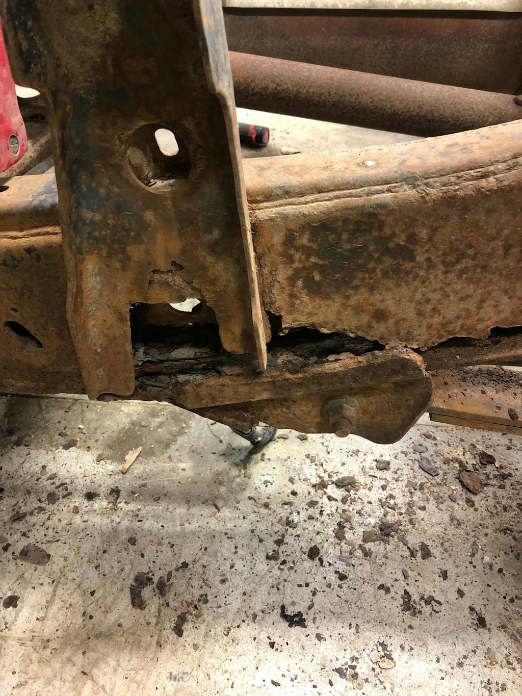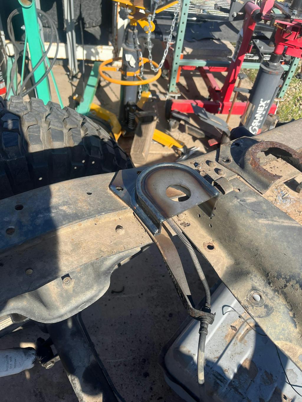 This is a great solution to fix the mid-right front portion of frame near the cab mount. Can cut out the affected area, or I found just as easy to slip over and weld in place. With this method there was a little fabrication, but guaranteed a solid fix!