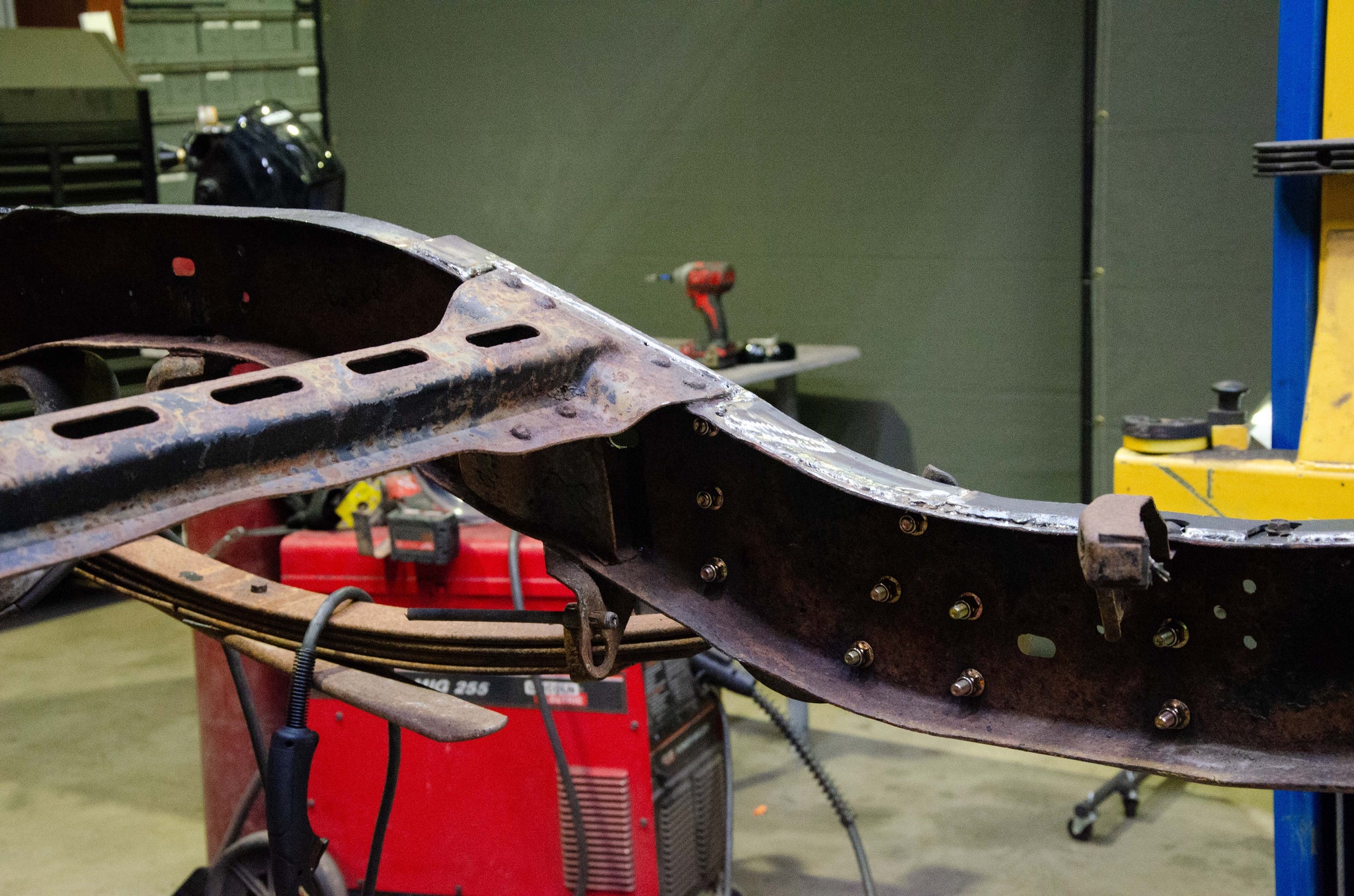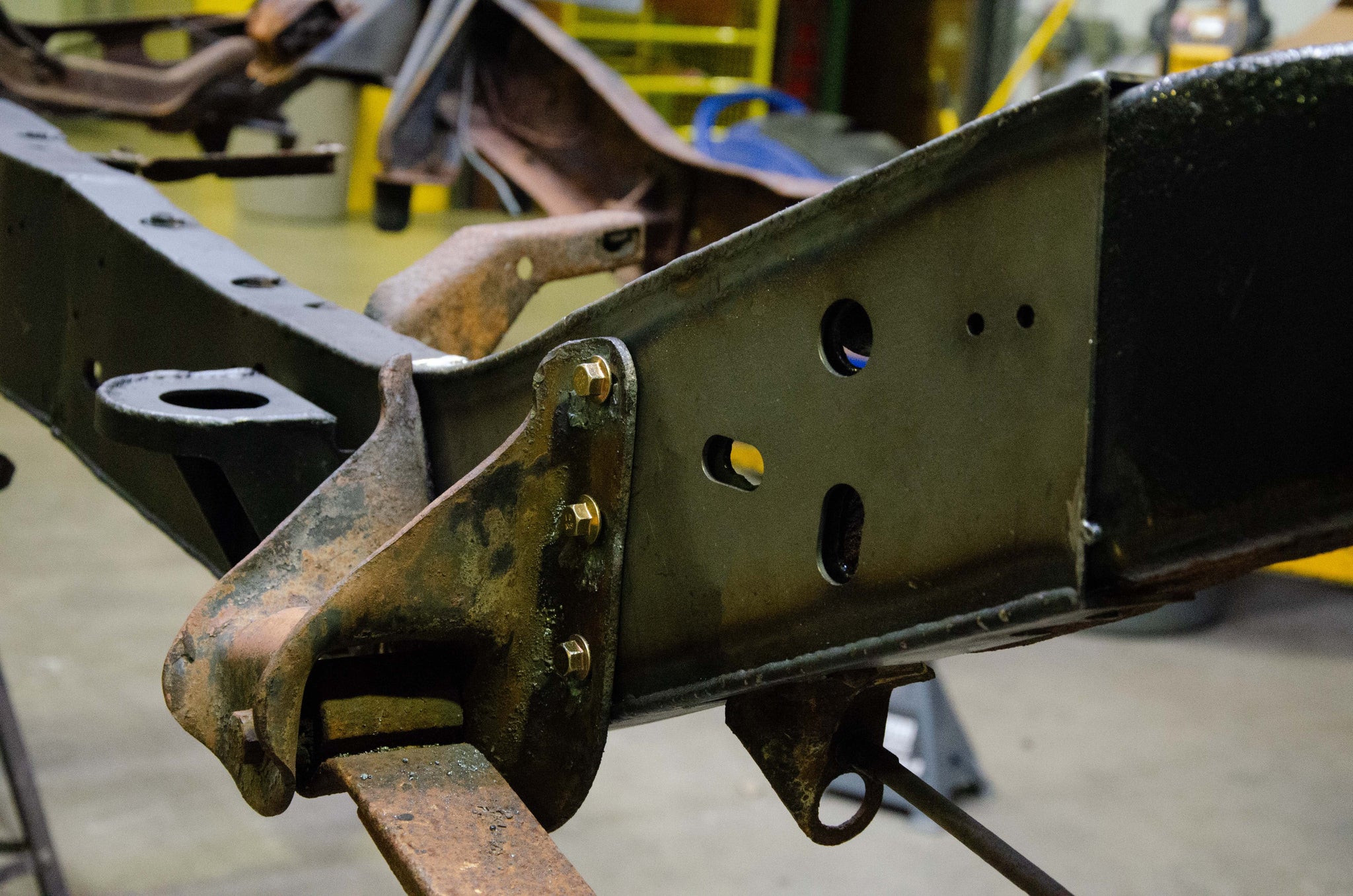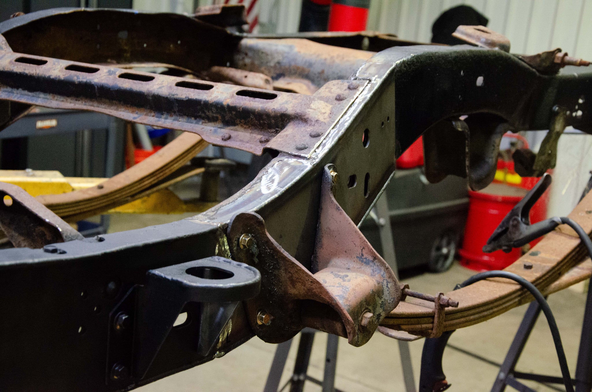 - Caps the Frame Rail at the Forward Leaf Spring Mount