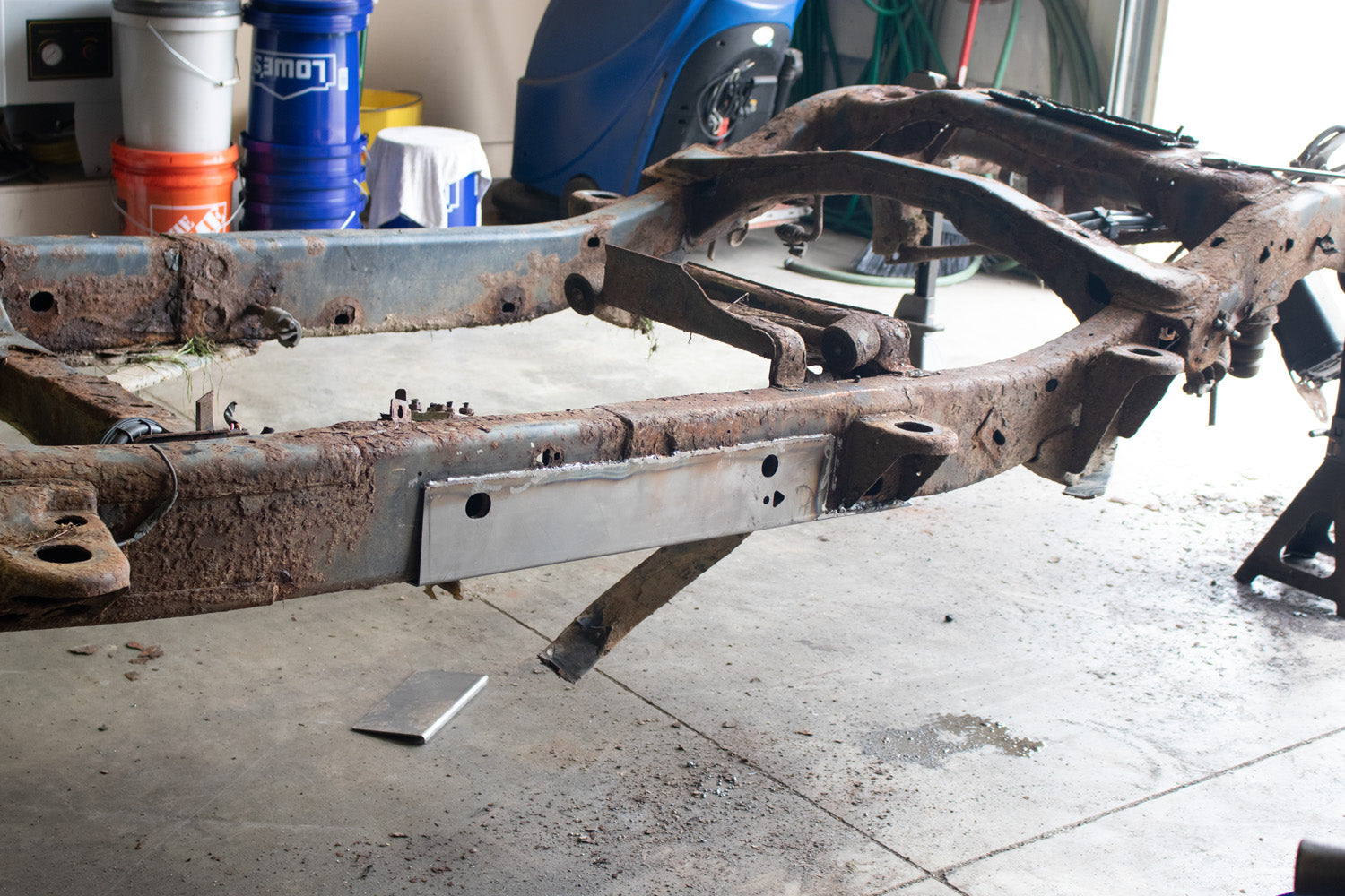 - Caps the frame rail in between the Center Body Mount and Transmission CrossmemberÂ
